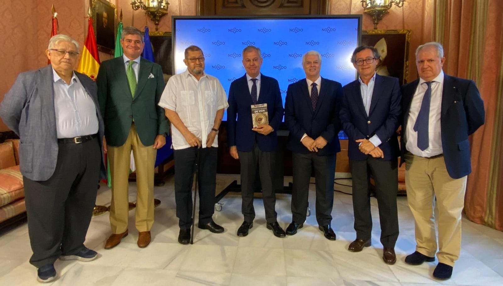 En la imagen, de izquierda a derecha: Fernando Reyero (colaborador de EmprendiTud), Manuel Parejo (director de Sevilla Open for Business), Angelino Garzón (exvicepresidente de Colombia), José Luis Sánz (alcalde de Sevilla), Javier Periáñez «CapitánPeri» (presidente de EmprendiTud), Luis Felipe Campuzano (vicepresidente de EmprendiTud) y José Aguirre (miembro del Consejo Asesor de EmprendiTud).